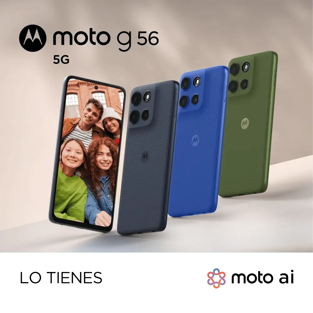 El Moto G56 5G es un smartphone moderno que combina potencia, conectividad 5G y gran autonomía para el usuario actual. Disfruta velocidad superior, pantalla fluida y la experiencia limpia de Motorola en un equipo listo para el futuro. 🚀📶